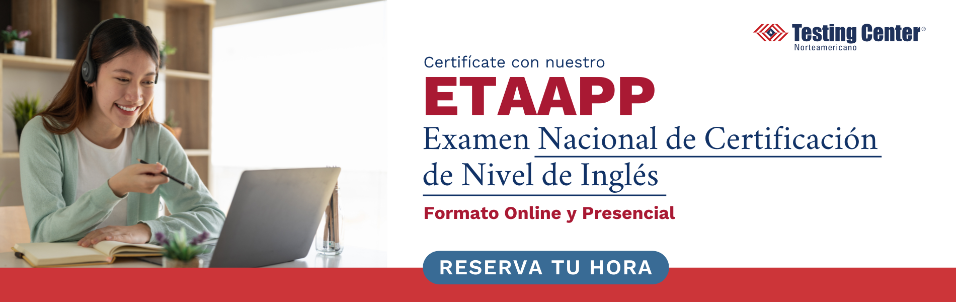 El examen ETAAPP (English Test Adaptive for Academic and Professional Purposes) mide la competencia lingüística de las cuatro áreas de aprendizaje del idioma inglés.